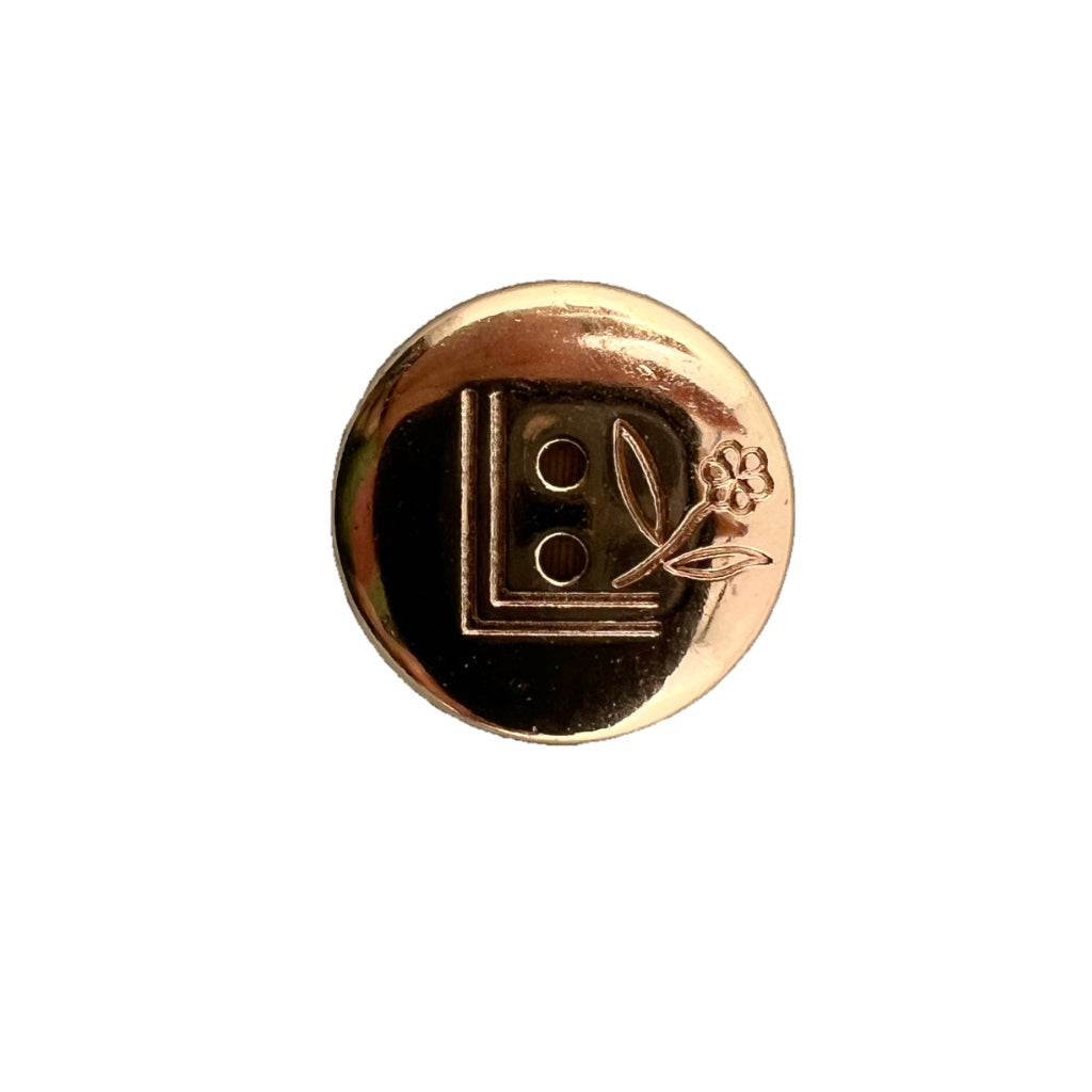 Button 311044 Bronze Metal with Stemmed Flower imprint 20mm
