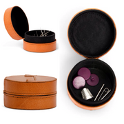 The circular case is closed with a tight attached lid The bottom of the case is magnetic which makes it easier to keep your needles in place.