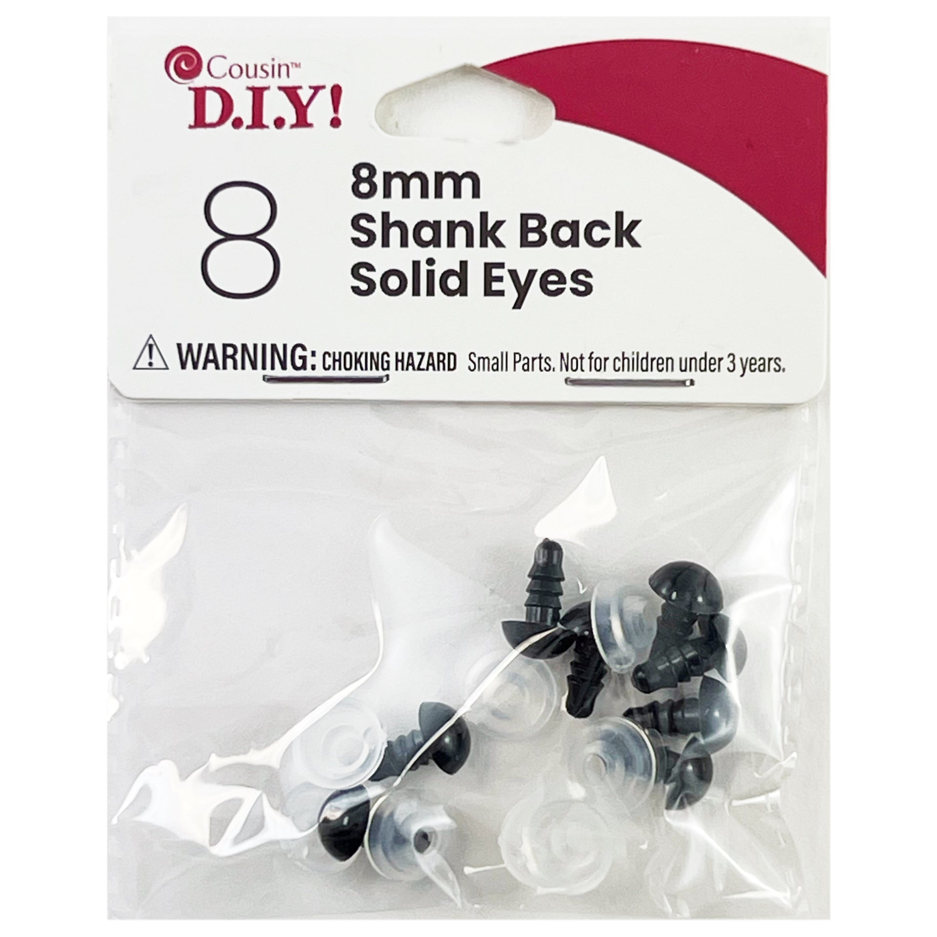 DIY-Solid Black Eyes. Glossy finished, solid black eyes with a shank back and plastic washer for attaching.