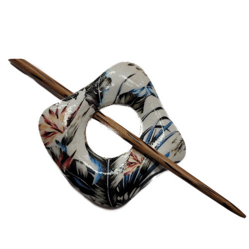 White Floral Obtuse shaped Shawl Pin 60mm x 60 cm (2 1/4 x 2 1/4")