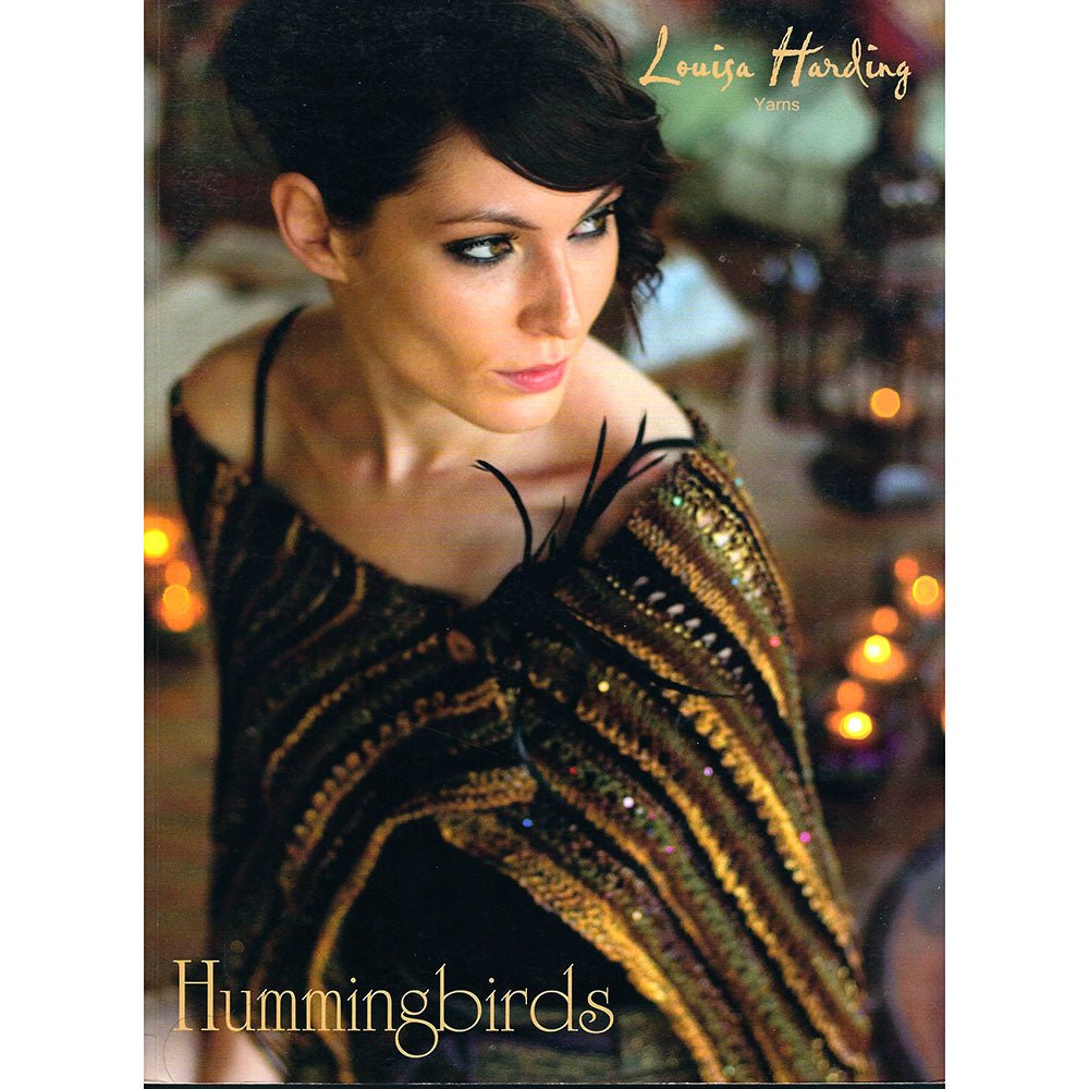 Louise Harding featuring in her Hummingbird knit pattern book: Nautical Cotton, Fauve, Glisten, Sari Ribbon, kimono ribbon.