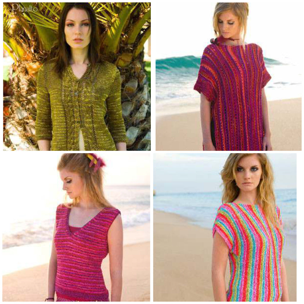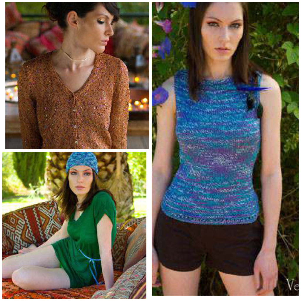 Summer sporty tops to sweaters, caps, purse utilizing different yarn textures.
