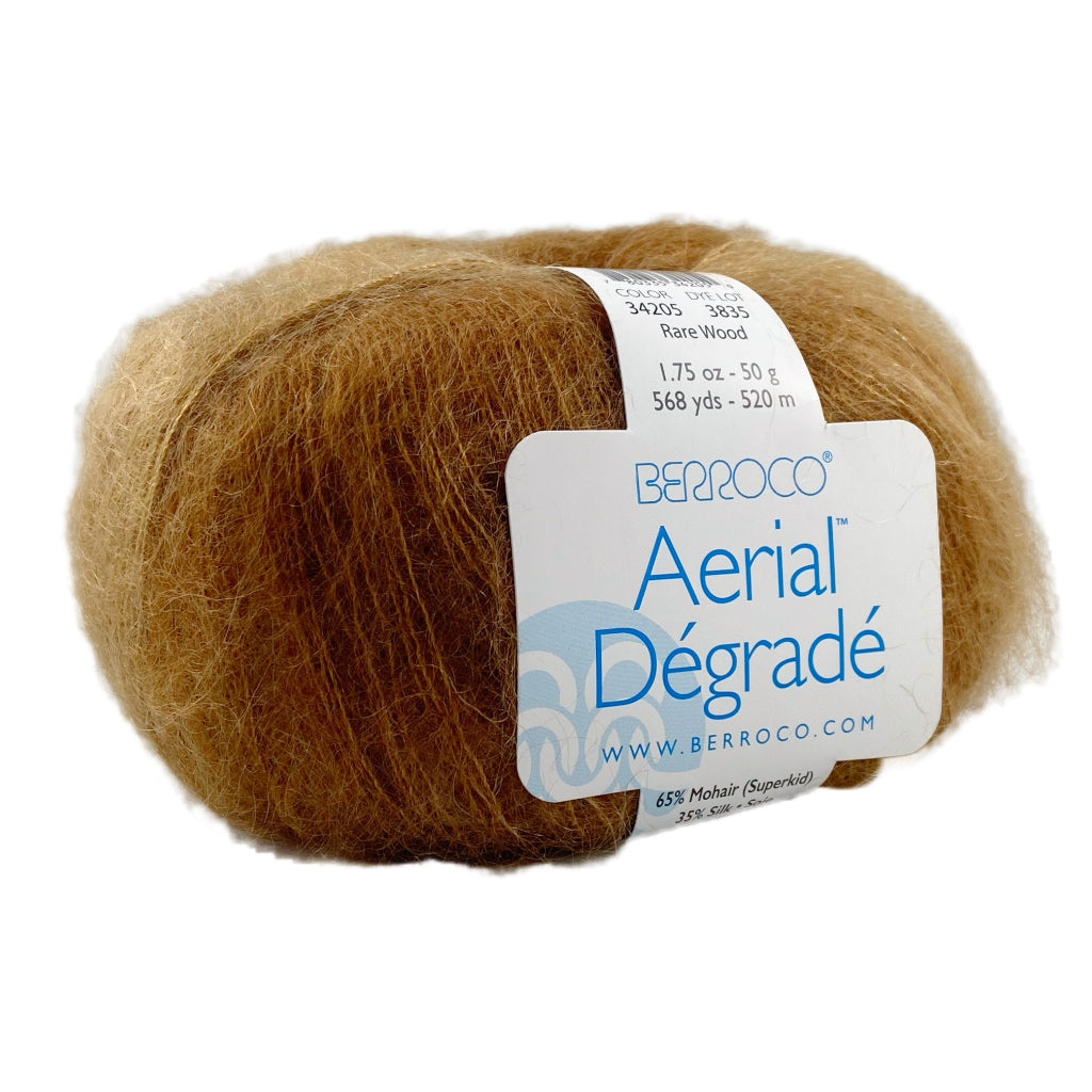Aerial Dégradé takes the luxurious silk and mohair base you love and adds gorgeous ombré color fades. Perfect for carrying along with workhorse yarns to add a soft halo and beautiful color shift, Aerial Dégradé also works up beautifully on its own or held with another strand of Aerial.