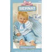 Bernat design Little Boy Blue (to crochet) two toned pant and top with appliqued crochet sailboat. Booklet also includes a checkered blanket in patch.