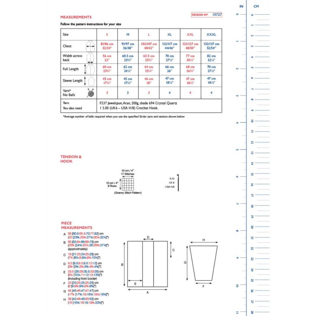 Gauge: 17 sts x 9 rows in granny stitch pattern