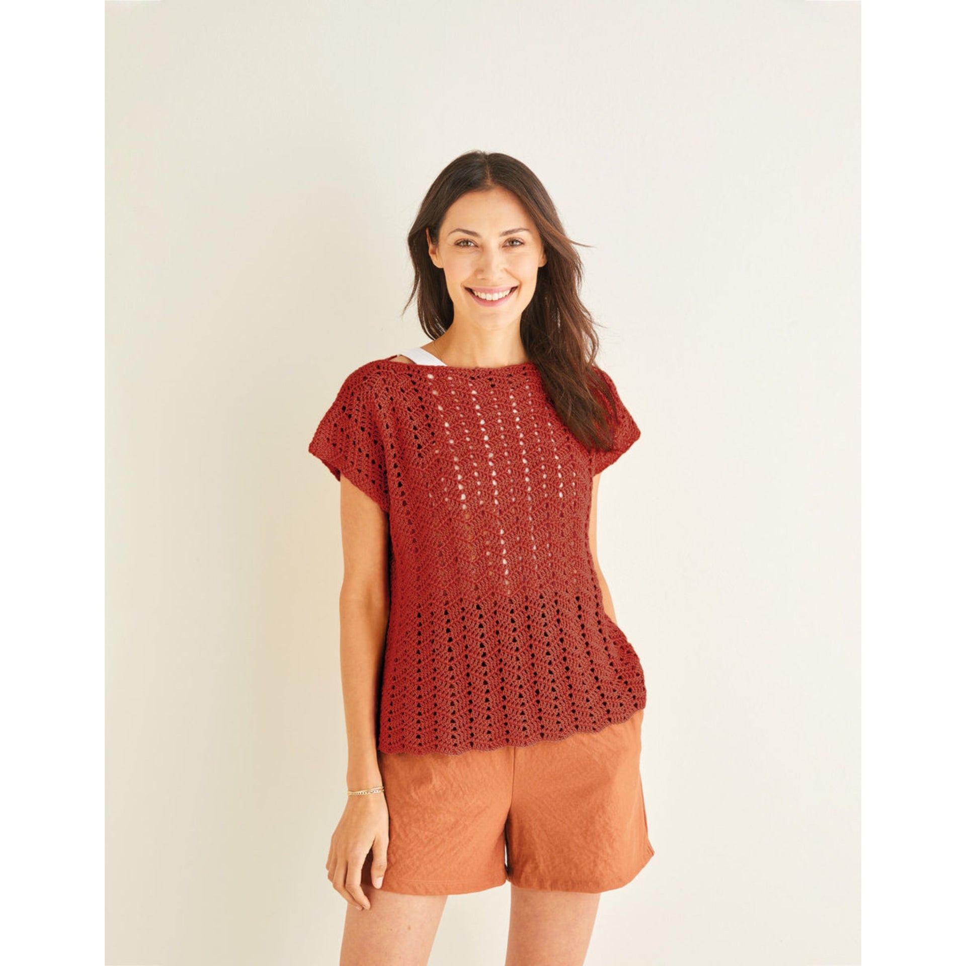 Sirdar 10250 Cotton DK Sweater crochet in semi fan and feather patterning Yarn: 4 to 7 balls/100g