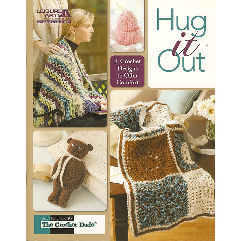 Hug it Out 5571 by the The crochet Dude Projects to offer comfort. Shawls, afghans, teddy bears, fuzzy hat Worked in medium weight yarn