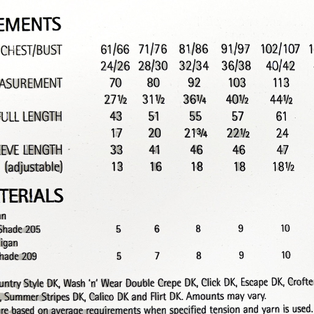 Size: 61/66 - 102/107cm (32/34 - 40/42") Yarn: 6 to 11 balls - 50gr