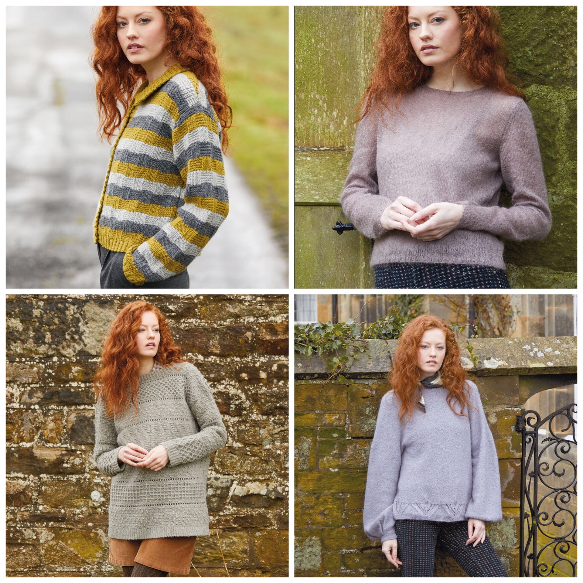 Fashions: stripped and fairisle cardigans and sweaters, and snow cap and shawls. Many textures fashions as well
