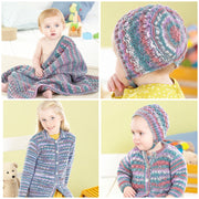 Sirdar Book 488 presents 12 handknit designs for babies, boys and girls in Snuggly Baby Crofter DK.