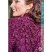 Features; oversized swing jacket with a cable detail, seed stitch collar and cuff.