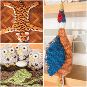 15 wild animal knitting pattens Fox stole, Hedgehog slippers,