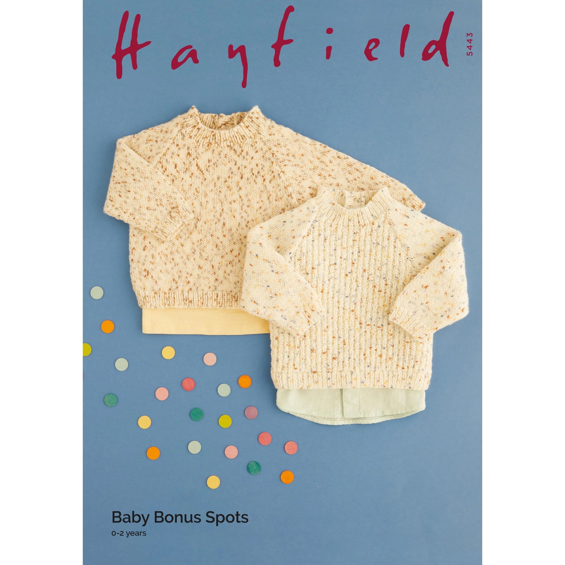 Hayfield 5442 Hayfield Baby Bonus Spots Two cabled sweaters with round neck and raglan sleeves with cabling