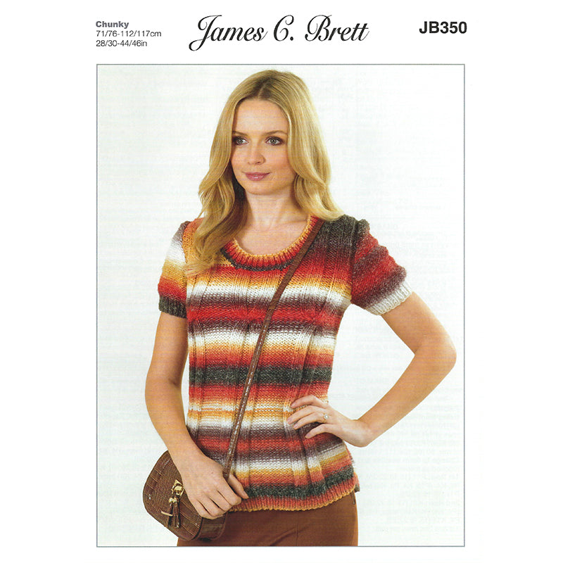 James Brett designs in Lakeland Chunky Sweater with short sleeves and embellished with three gentle elongated cables.Sizes: 28 - 46" (71 =117cm)