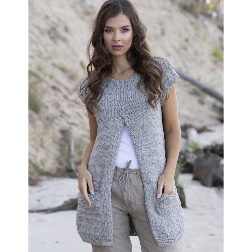 JL-03C Coastline - Devon Shift Textured zigzag patterning - long shift with top closures with optional pocket DK yarn (350yds per/100g ball)