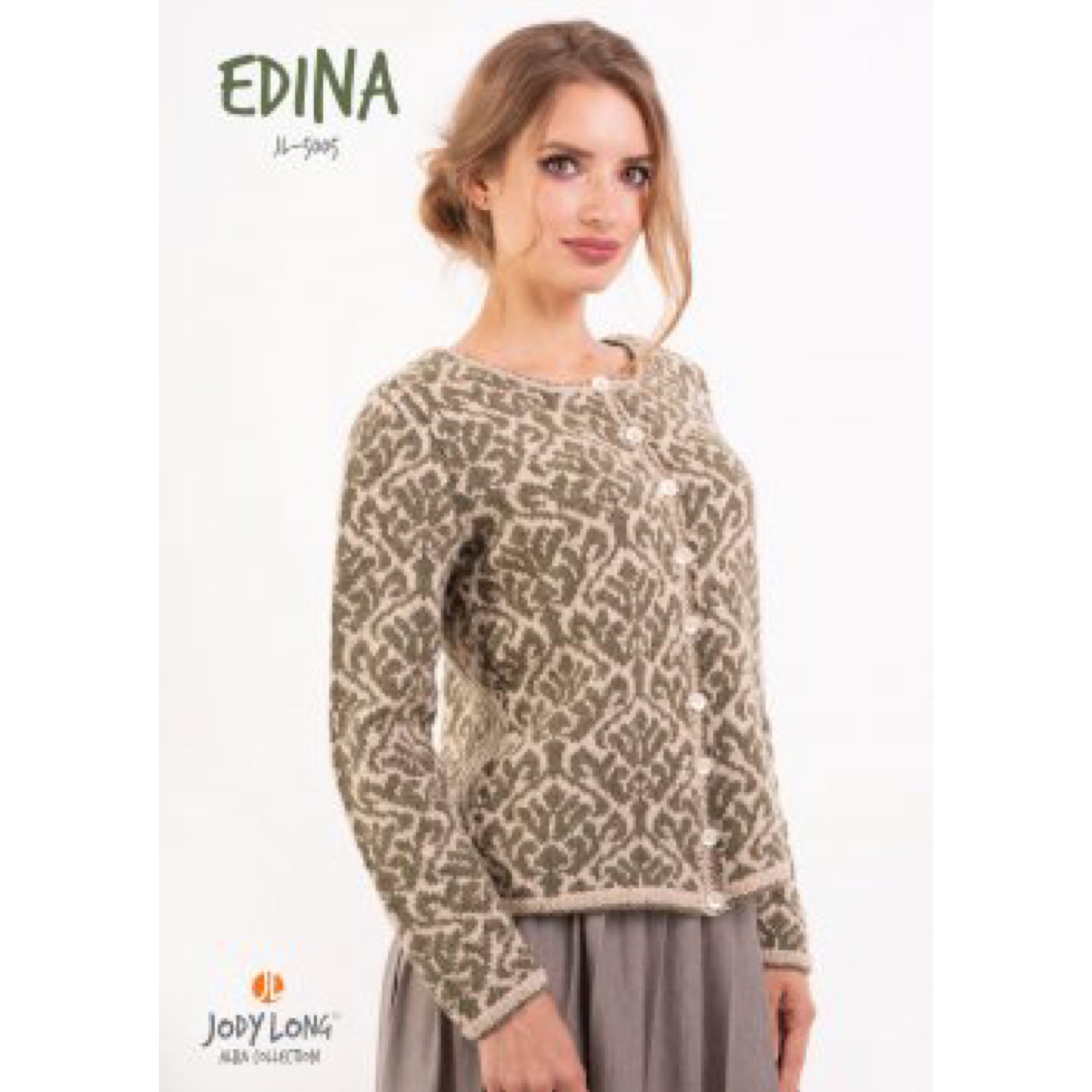 JL-5005 Alba Edina Cardigan Fairisle sweater with fitted sleeves and button front.
