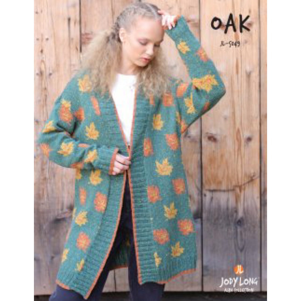 JL-5049 Alba Oak Coat Sweater Coat Sweater with Oak Leaves (Maple Leaves) patterning with front and edge ribbing