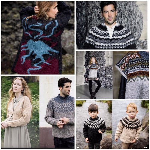 Using Alafoss Lopi New designs, traditional and modern styles. Boleros, fairisle, yoke, cardigans, sweaters, mittens, hats, jackets.