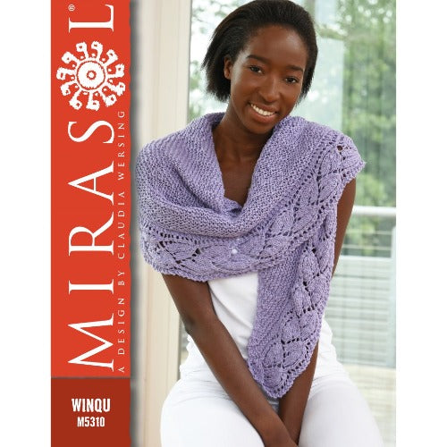 Winqu Buena Wrap Garter stitch wrap with leaf lace design border