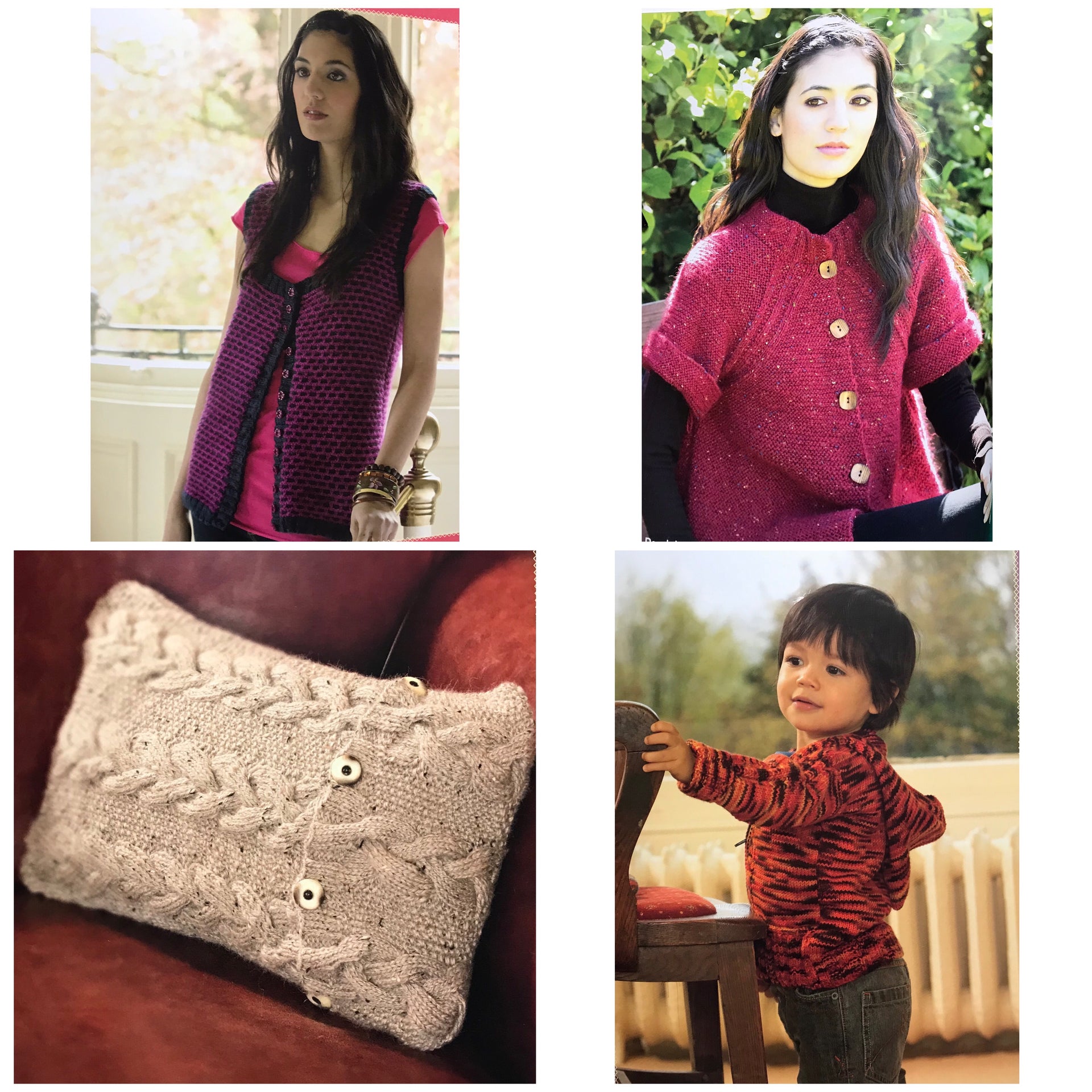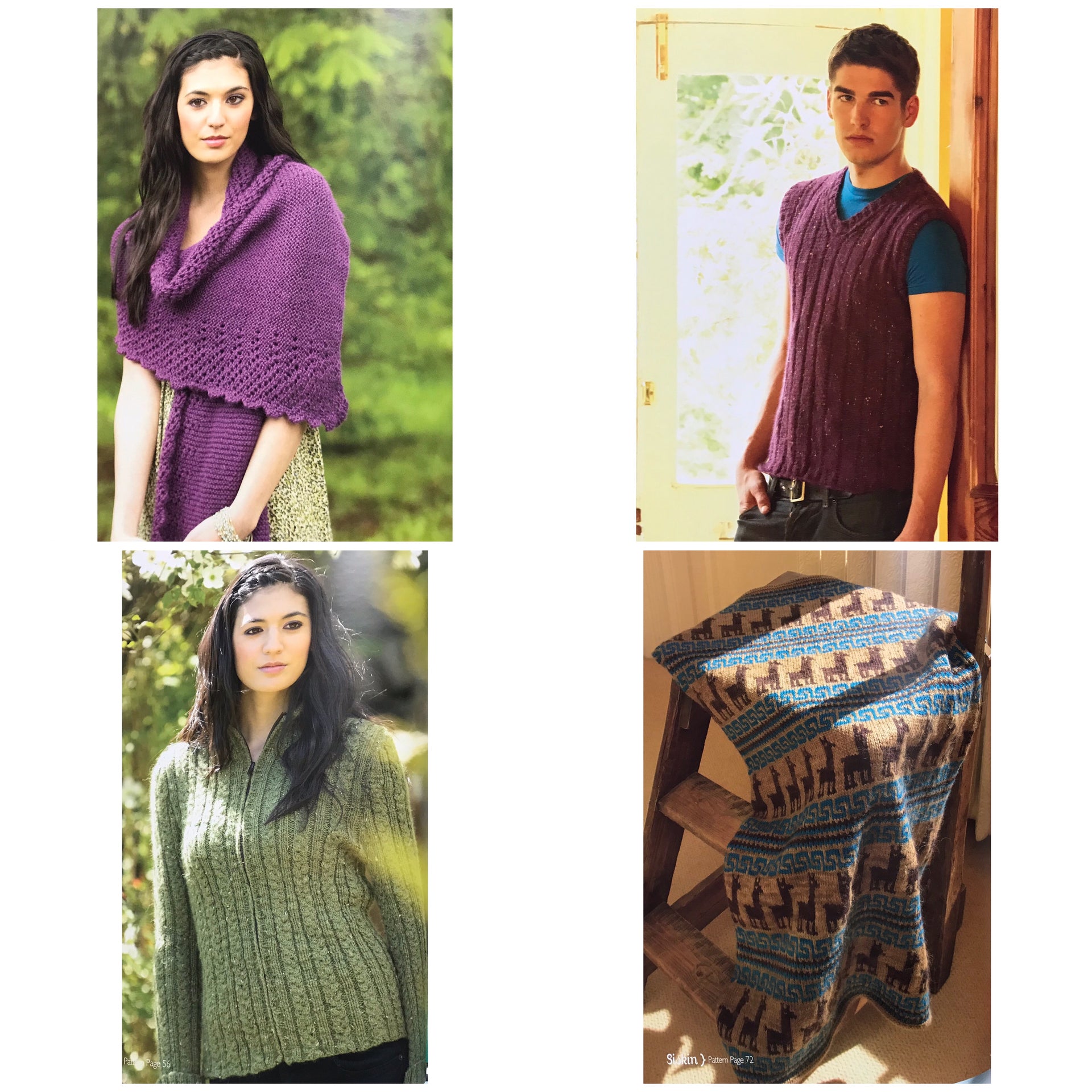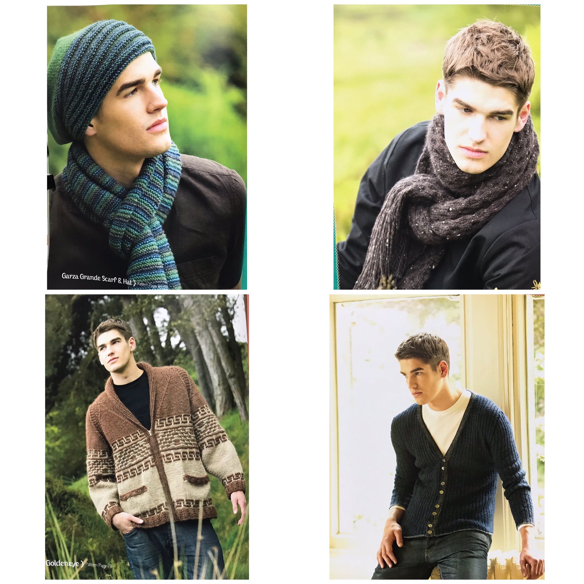 Designs: snow cap, jackets, sweaters, cardigan, cowls, Grandpa sweaters with rolled collar