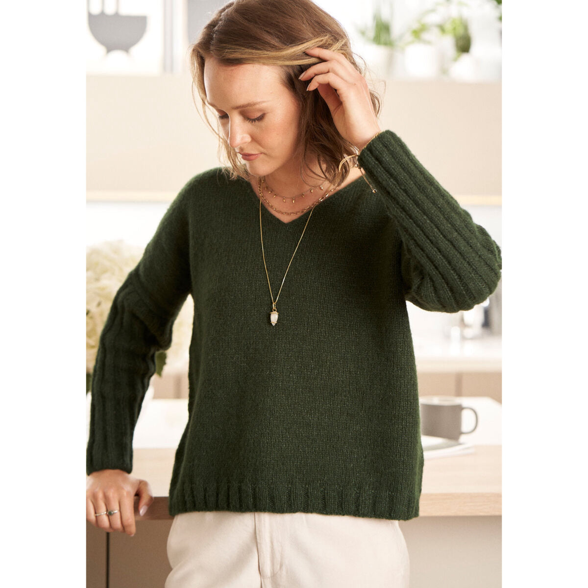 A boxy fit, v necked sweater with deep rib detailing on the sleeves and hem. Prairie features a stocking stich body and ribbed sleeves which add interest to this simple, wearable piece.