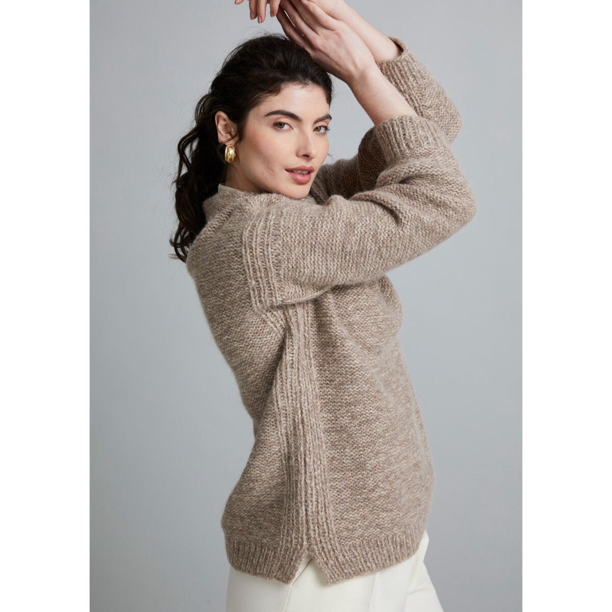 Fern is knit with Softest Alpaca and Alpaca Haze held together over reverse stocking stitch, with ribbed hems, cuff and side seam detailing. This warm wardrobe staple adds texture and has showcases beautiful drape making it a piece you will wear day after day.