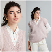 A contemporary twist on a classic, Mirabelle is knitted top-down with a relaxed, oversized fit and a clean, mitred V-neck. Finished with ribbed hem and neckline, it's worked in Merino Soft and Alpaca Haze held together for ultimate softness and a delicate warmth.