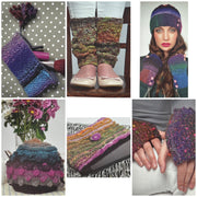 Leggings, leg warmers, boot cuffs, caps, tea cosy, fingerless gloves, headband, cowls scarf, wraps