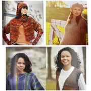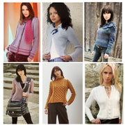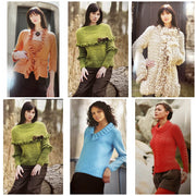 Includes; cabled cardigan, shrug and poncho, vests, v neck sweater, hobo tote, purse, pullovers, hat, hooded zipper cardigans, twin set, capelet,