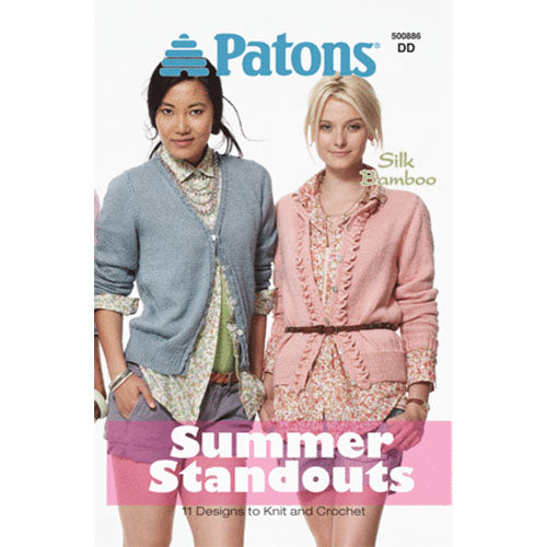 Patons designs: Summer Standouts: Cardigans , Radiant Ripple Vest, Tank with Optional Frills, Corsage Crochet Tank, Lattice Lace Wrap, Arrowhead Shawlette, Nautical Tee