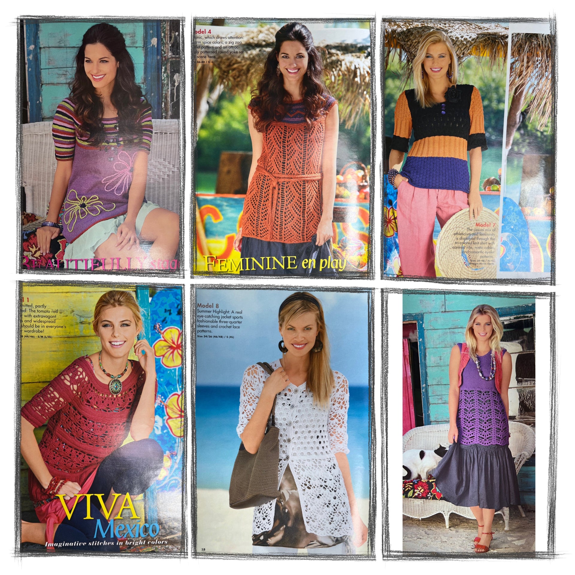 Choices to knit or crochet. Work with color and embellish with embroidery, lace and texture