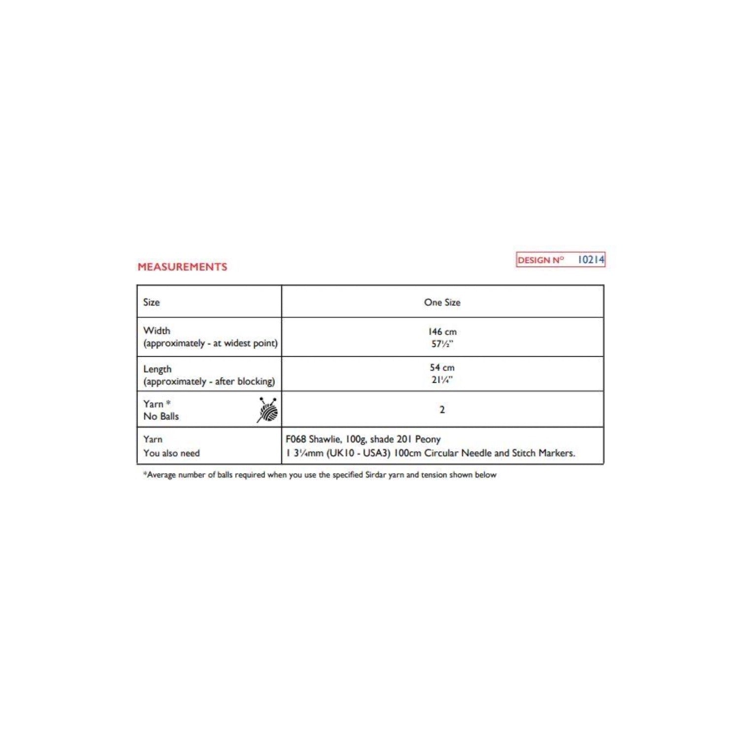Sirdar Shawlie Cable Shawl in garter stitch with leaf cable for edge and center back Shawl 146cm x 54cm (57 1/4" x 21 1/4") Yarn required: : 2 balls/100g