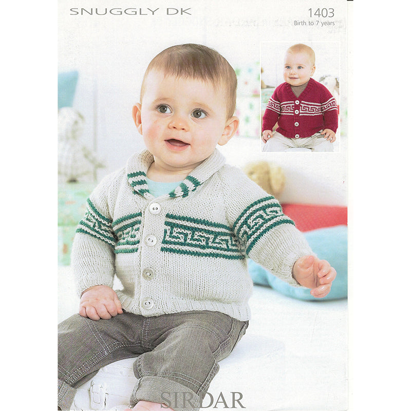 Sirdar Snuggly DK has that "grandpa"look with collar design or v neck. Dimensional second color is geometrically easy to follow.