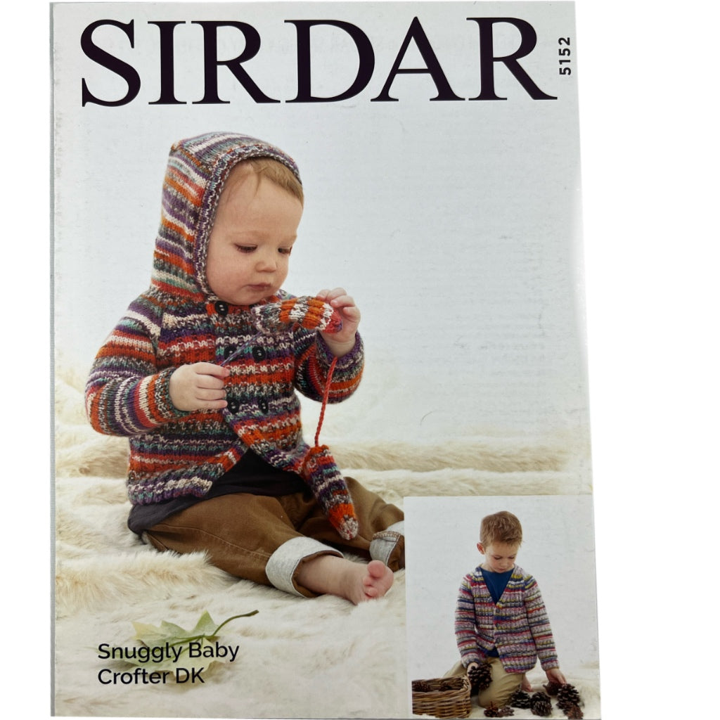 Sidar Leaflet 5152 - Snuggly Baby Crofter DK Hooded Jacket, V Neck Cardigan, and Mittens Sizes: 0-6 mnths to 6-7 yrs