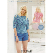 Sirdar - Cotton Prints DK in a sweater with peak a boo sleeve technique in 3/4 length. Optional short sleeve with both designs worked in boat neck styleSizes range 32-54 in (81-137)cm.