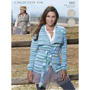 Adult Crofter Dk Cardigan with optional belt. Fold over collar with set in sleeves or sleeveless design