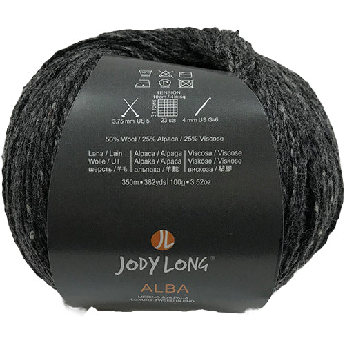Jody Long Alba This tweedy yarn combines a luxurious blend of Merino Wool and Superfine Alpaca, accented with a taste of viscose sourced from German sustainable forestry.