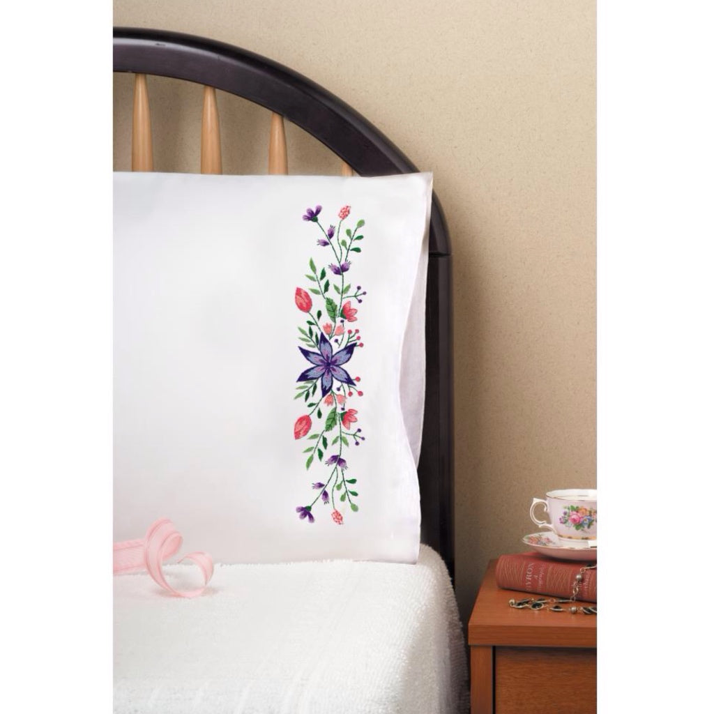 This package contains two poly/cotton blend pillowcases, easy to follow instructions and a tread shopping list on back. 180 thread count.