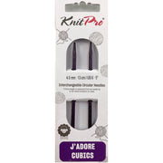 The J'Adore Cubics Interchangeable circular needlesin Regal Lavender color, comes in a range of needle tip sizes with easy to connect kink-free cords.