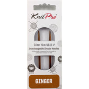 Ginger interchangeable circular needles come in a richly colored, warm laminated birchwood that has a traditional look and feel. The tapered points are smoothly honed to perfection for easy knitting and stitch pick-ups, too!