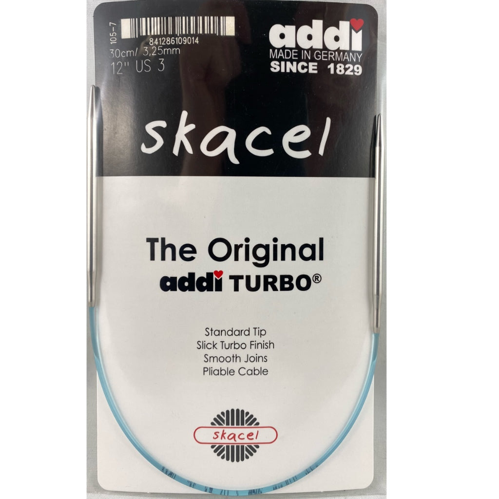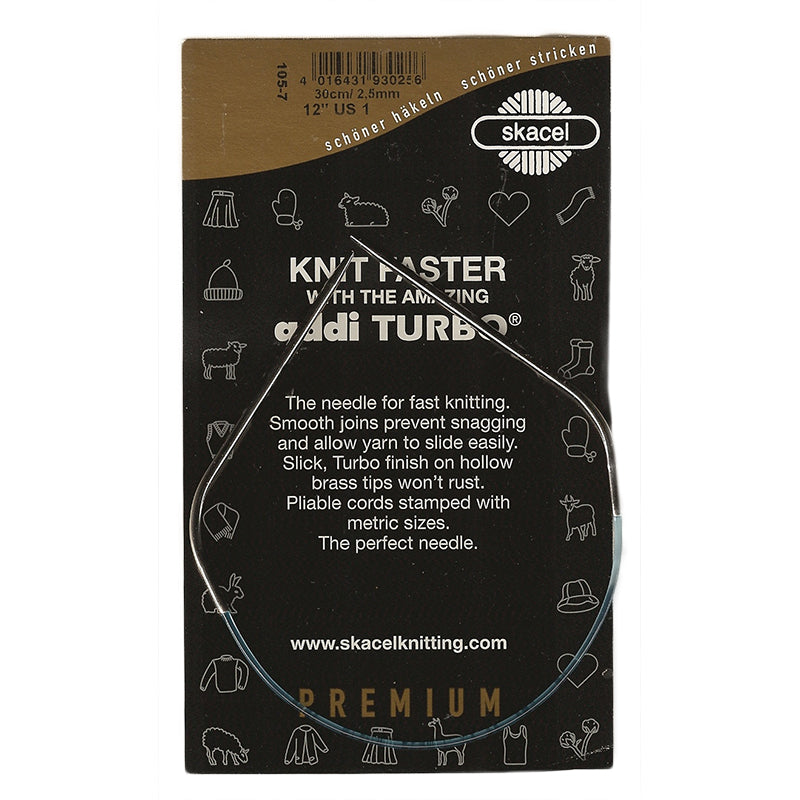 The addi Turbo circular needles are ideal for knitting in the round. The needles have soft, pliable cables, snag free and nickel plated brass tips which gives a wonderful glide to your yarn, making knitting that much easier and quicker.