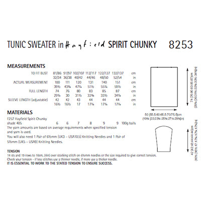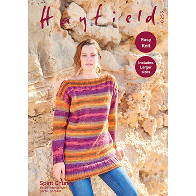 Hayfield Leaflet 8253 - Spirit Chunky Ladies Sweater with boat neck look, and dropped sleeve