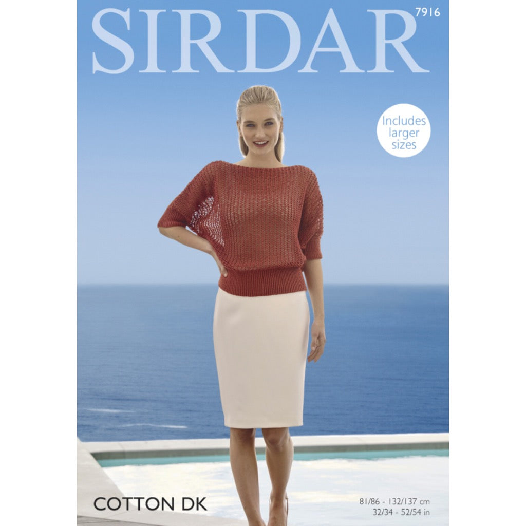 Cotton DK designed in lace boatneck sweater with bat wings. Ribbed edges of sweater and neckline