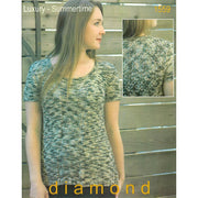 Diamond Leaflet - Sweater with textured front. Knitted in Luxury - Summertime, this slightly scooped sweater has textured front band with fitted short sleeves. Back, top half is also has interesting texture.