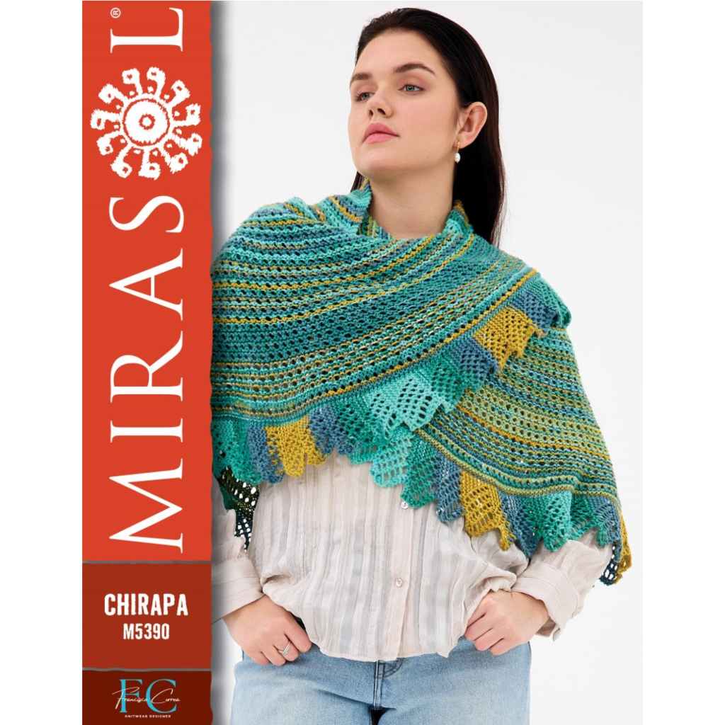 Mirasol 5390 Chirapa Sandra Shawl with lace border, using self stripping yarn #103