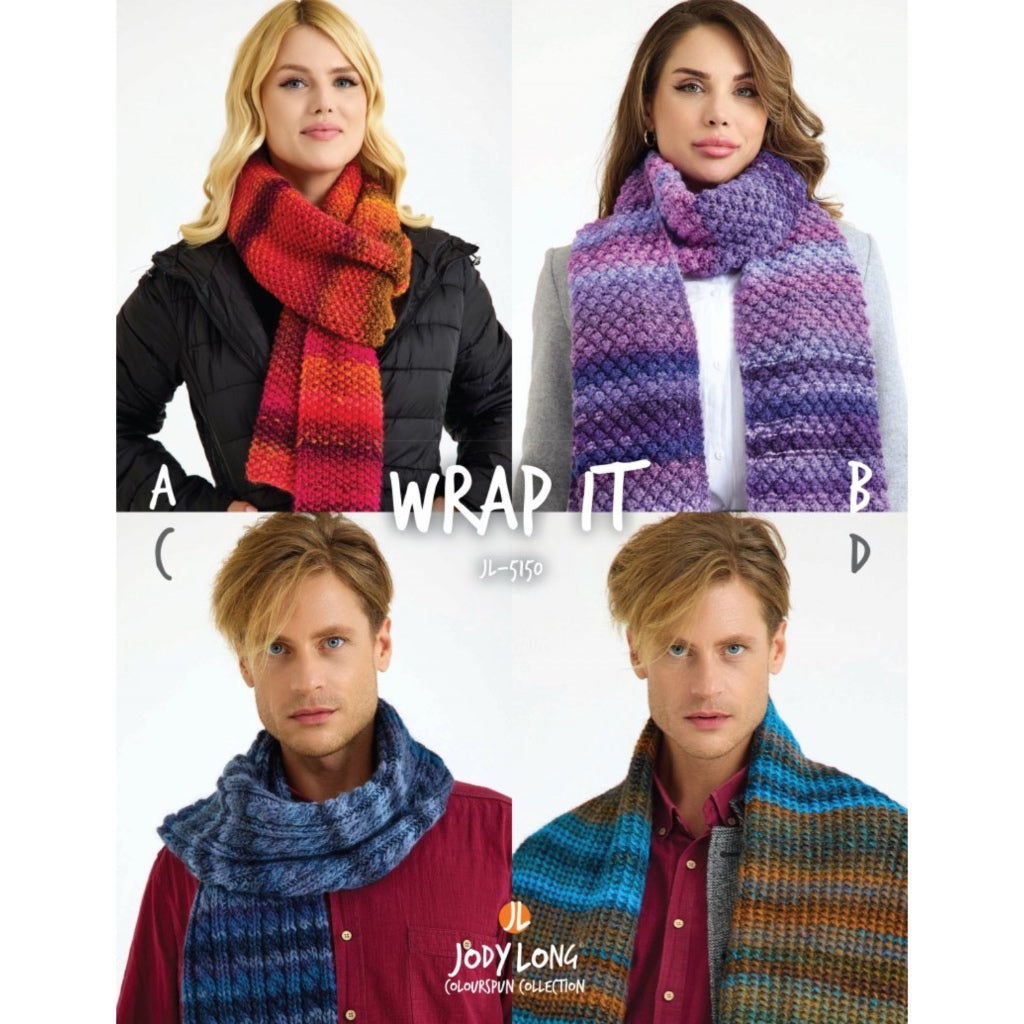 Colourspun Collection Wrap It in four different textured designs for neck warmer/scarves
