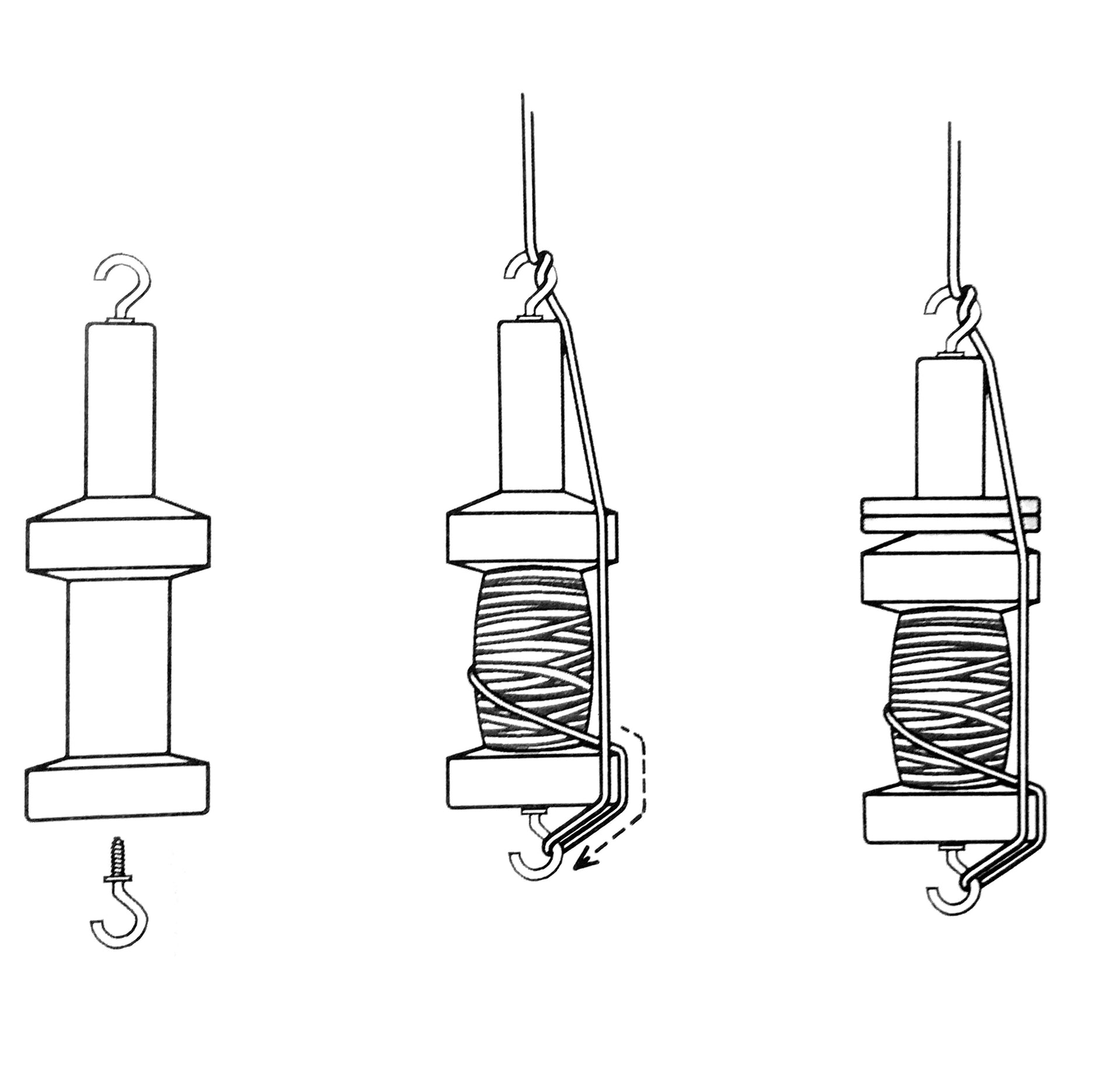 Designed to hold long lengths of warp thread around the central spool. Includes hooks on both ends and multiple steel weights to vary the tension on your yarn.