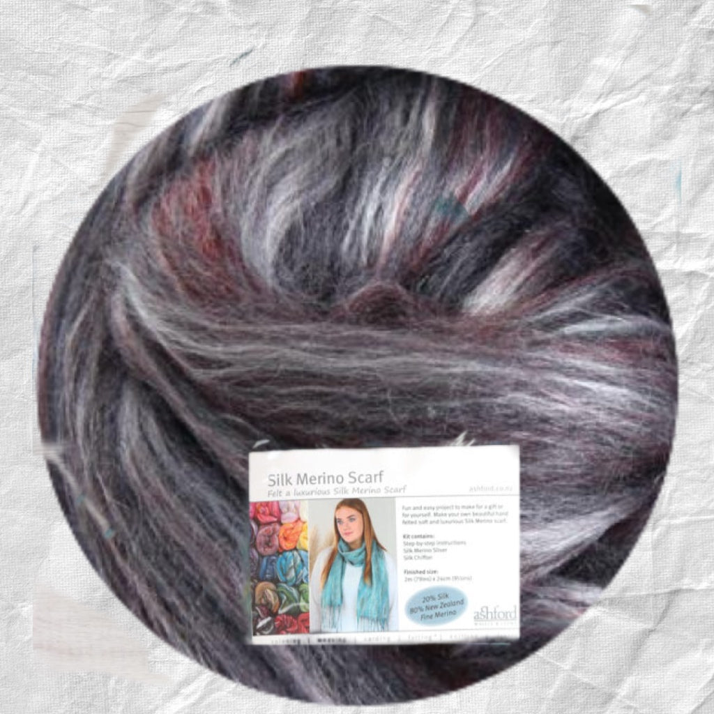 The Ashford, this kit is an excellent introduction to Nuno felting - the art of creating fabric by layering fine fibres and sheer silk fabric.