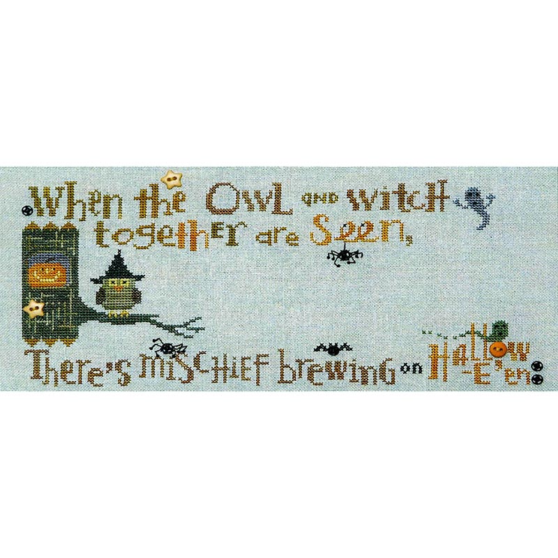 Bent Creek - Snappers - The Halloween Branch - Halloween - Hooty Ho Owl and Border. Collect all or work chart as a complete pictureIncludes buttons and snaps for embellishment Stitch Count 168 x78