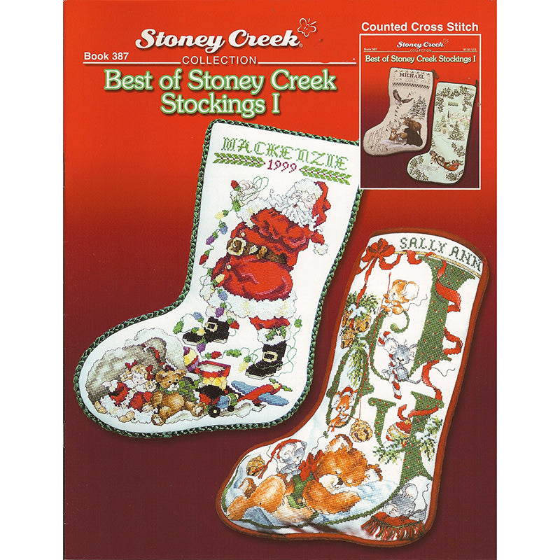 Stoney Creeks Best of stockings 1. 4 designs The stockings capture the images of Santa holding on to his Christmas bulbs with a bag of toys, doll, teddy bear, plane and train some of the gifts in his bag.